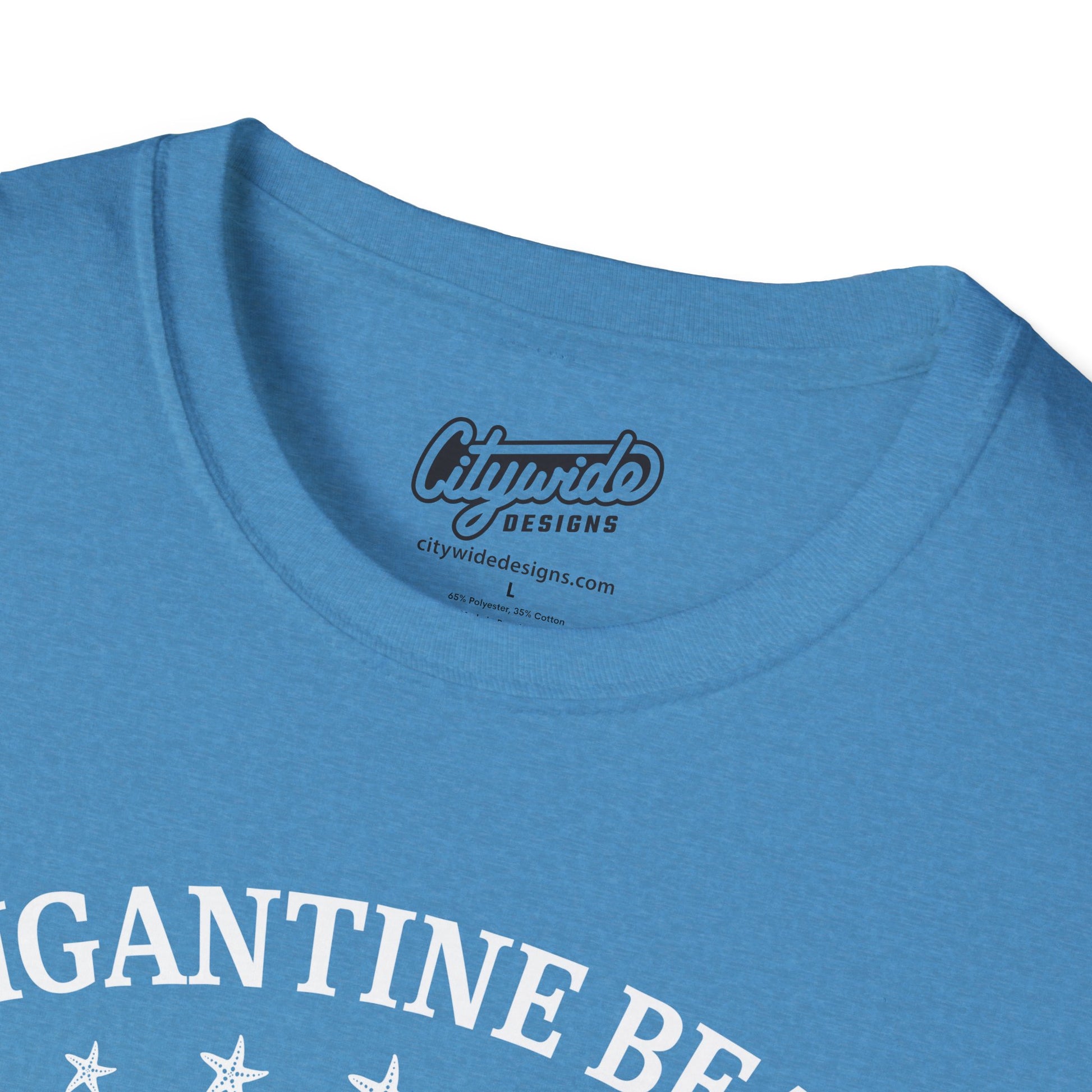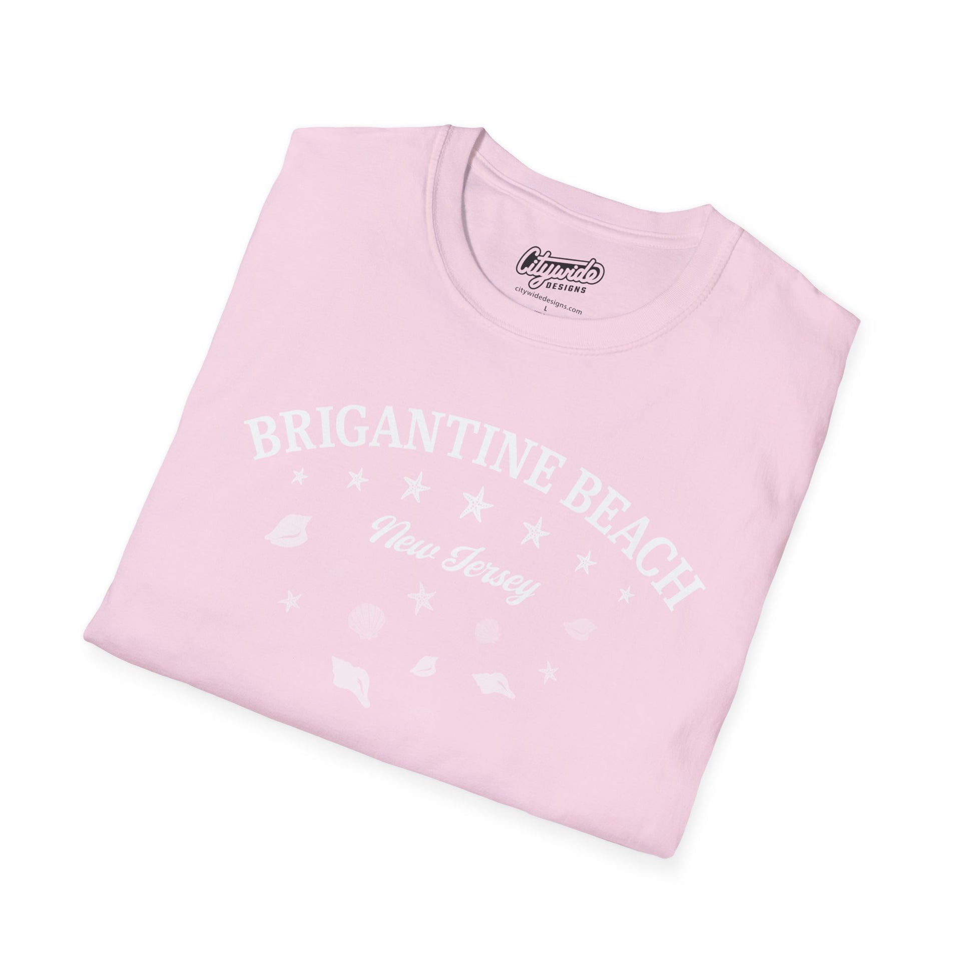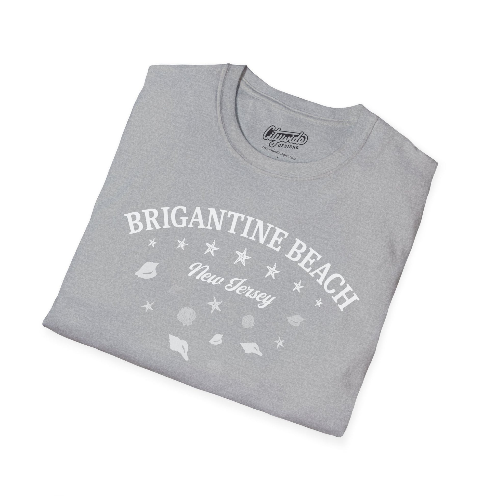 Show your Eastcoast pride with this Brigantine Beach t-shirt featuring various shells and stars, arched Brigantine Beach lettering. Clean, modern, and comfy.