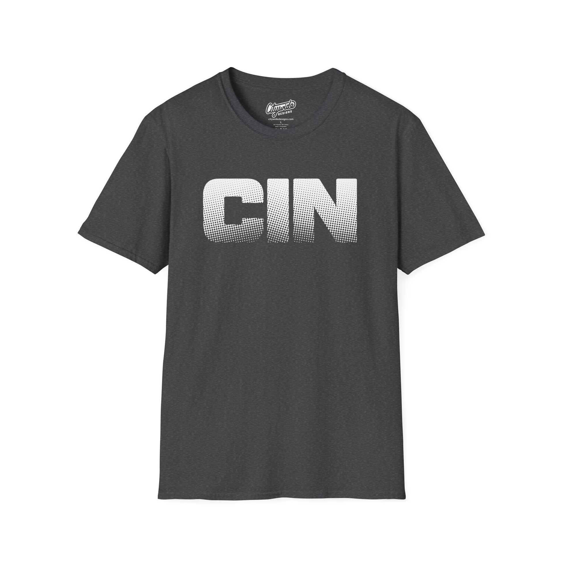 Celebrate bold graphic style and hometown energy with this pop art–inspired tee honoring Cincinnati, Ohio. The design features “CIN” rendered using halftone dots, drawing inspiration from classic pop art and modern print techniques. The dotted texture adds depth, movement, and visual impact, creating a clean yet expressive graphic that feels creative, contemporary, and rooted in Cincinnati pride.