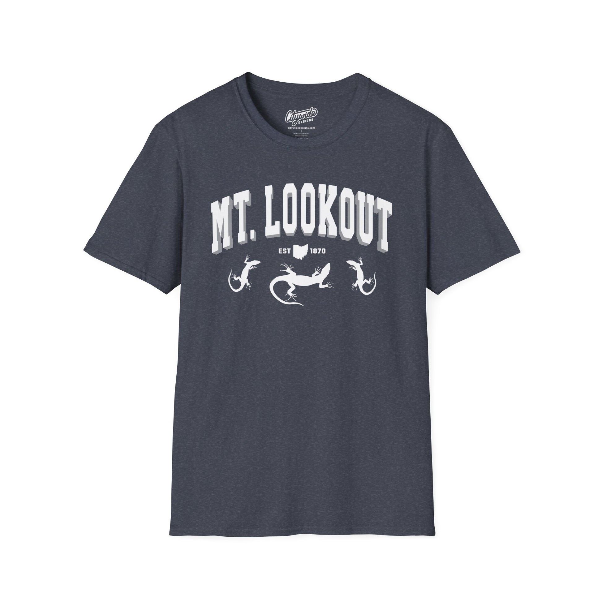 Celebrate Cincinnati’s Mt. Lookout with this fun neighborhood tee featuring a nod to the local lizards. Perfect for Eastside pride and everyday wear.