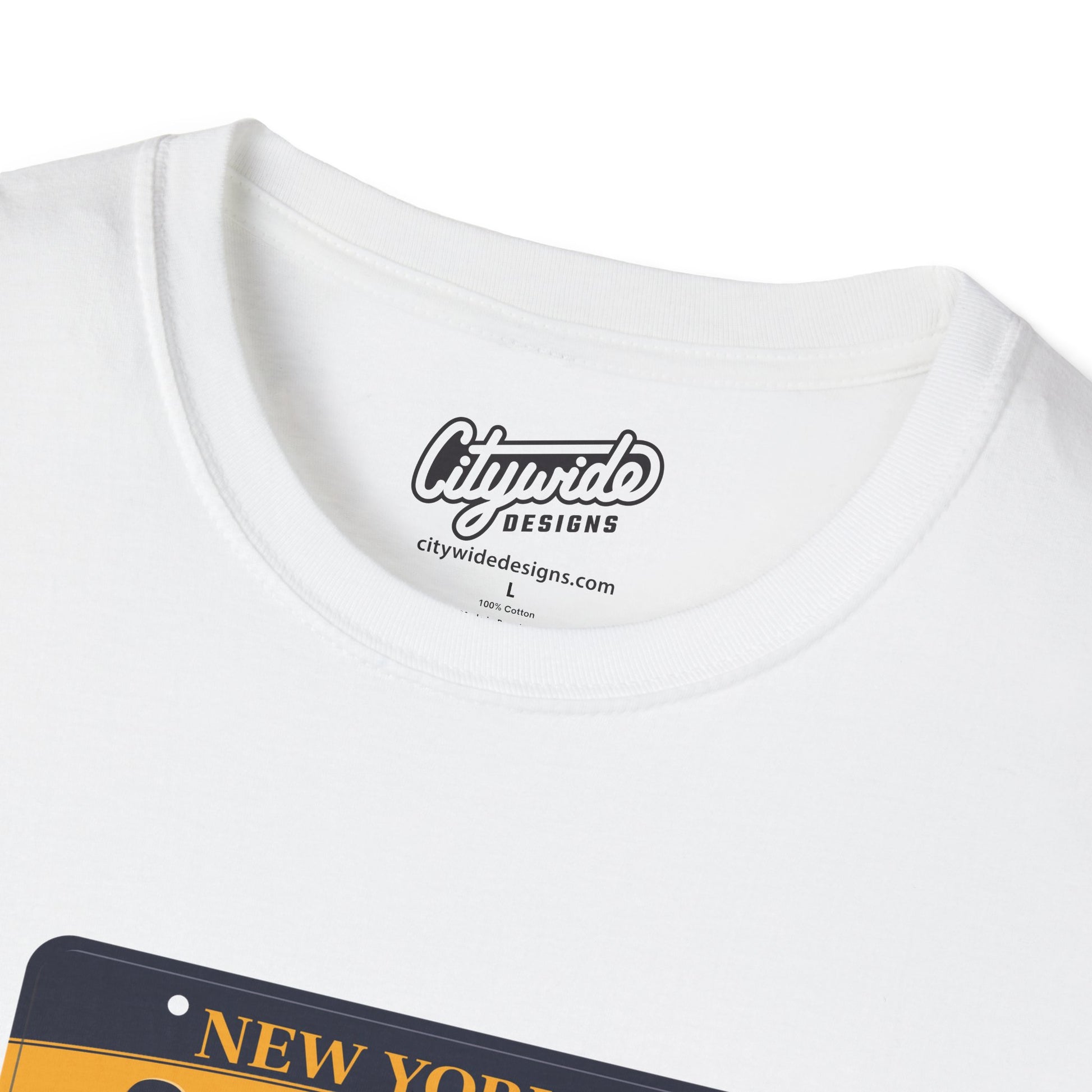 New York License Plate Graphic Tee with Queens Text T-Shirt